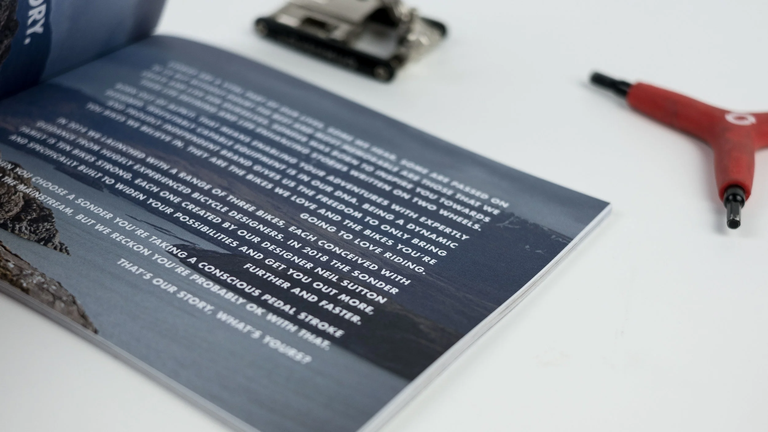 Helping Sonder emerge from the shadow of its big brother Alpkit and giving them their own voice and vision, all based around creating new adventure laden stories on two wheels. The Sonder Storybook wrestles all members of the brooding, beautiful and boisterous family into one space for the first time - clearly defining each one’s raison d'être. It gives customers clarity in an increasingly fuzzy bicycle market, as well as the vital language with which to explain what and how they want to ride. All in a handy A5 perfect bound little black book.